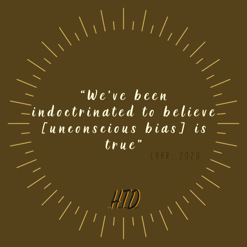This quote from Char resonated for me and really highlights what is going wrong with the discussion around race today. We are letting our unconscious bias be portrayed as truth, which is just isn’t. The ask from Char, and from everyone else is to recognise that when thoughts come into our heads, they are based on the portrayals that have come before us – and the media and politicians in particular have been inciting racial bias for decades.